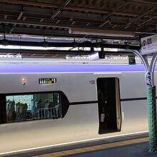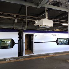 車両が白色に、上の部分が紫で、スリムなスタイリッシュな感じで、カッコいいです。座席も落ちついていて、リクライニングもできます。快適な座席なのは良いのですが、揺れます。酔いやすい方は、注意が必要だと思います。