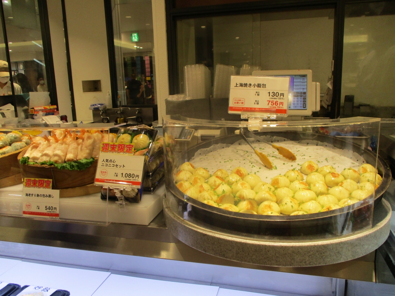 色々なデパ地下に入っている高級中華デリのお店でした。銀座三越の地下2階は、美味しいものだらけで、このお店の「上海焼き小籠包」はお値段もお手頃で持ち帰りにぴったり、惣菜、点心、麺飯などいろいろありました。