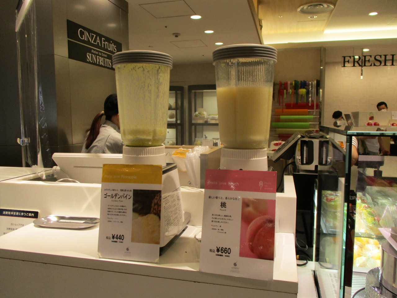 銀座三越の地下3階の高級果物専門店のサンフルーツのジューススタンドでした。ただのジュースではなく、新鮮な旬の最高級の果物を絞ったジュースでした。当然栄養価も高く、味も濃く大満足でした。お買い物の合間のリフレッシュにオススメです。