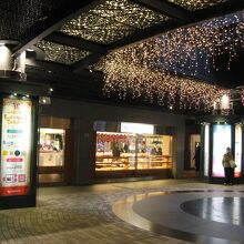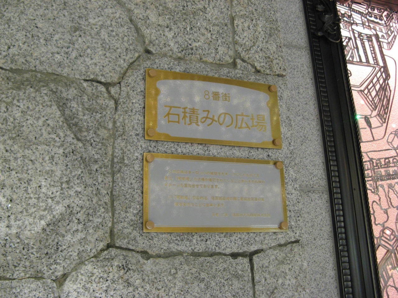 天神地下街の中ほど、8番街の東西を結ぶ空間の広場が石積みの広場です。かっての福岡城のお堀の石垣があったところで、遺構そのものではなく壁面が石垣風になっています。店舗がなくお洒落な感じのスポットで、ベンチもあって休憩や待ち合わせには向いている場所だと思いました。