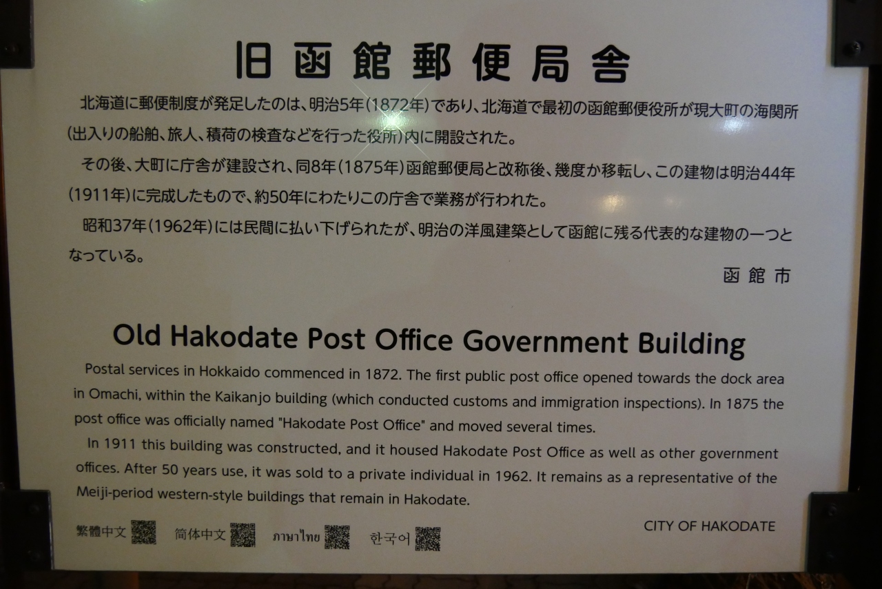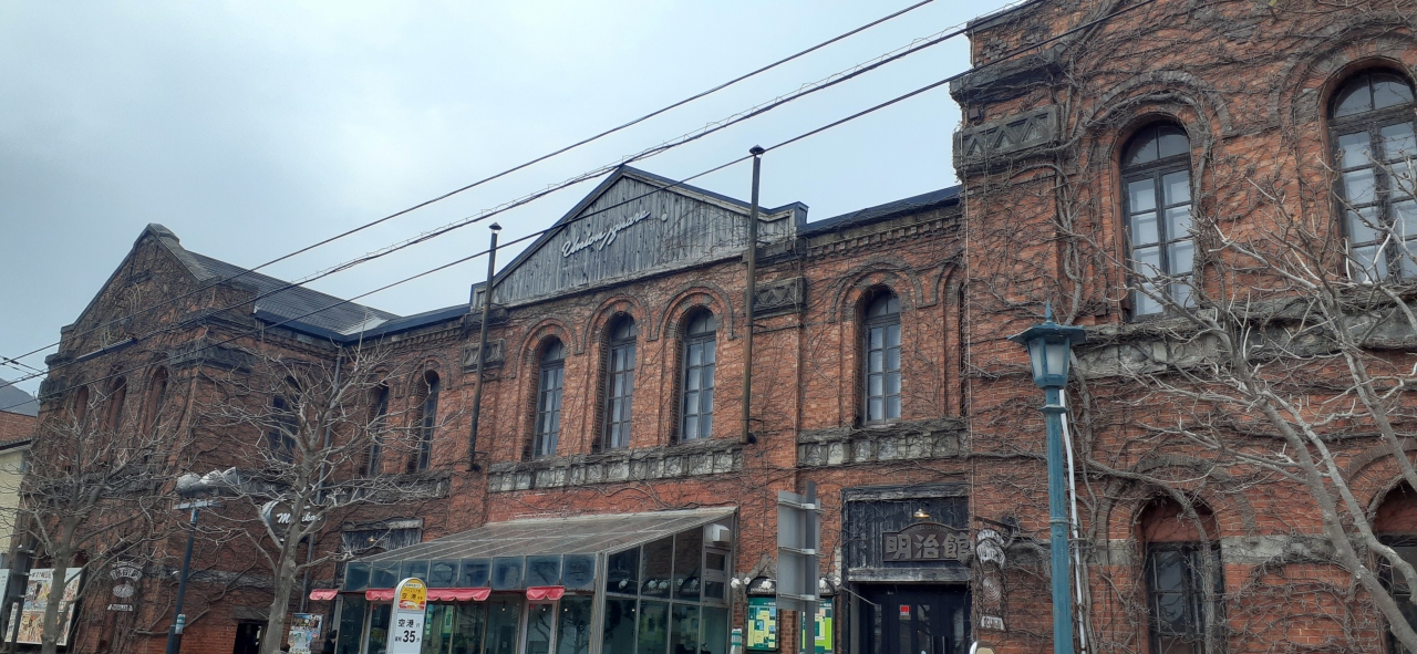 函館駅から函館朝市通りを通り、金森レンガ館の手前にあります。