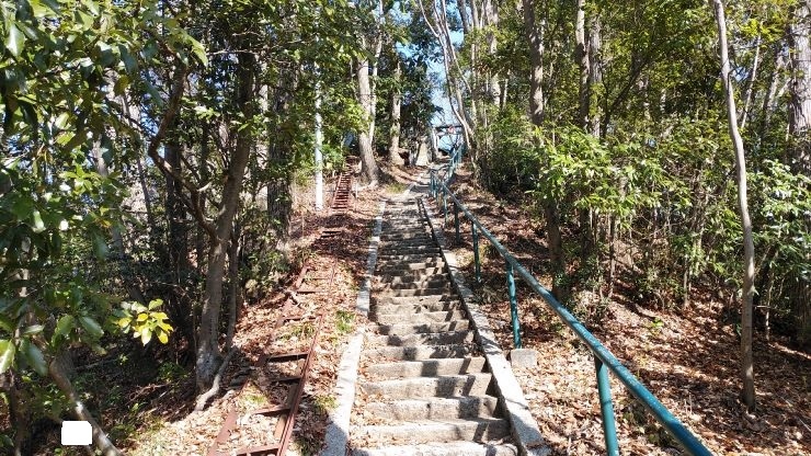 丘の上にある住宅街の裏手にある山をさらに上った森の中に社殿が鎮座している。住宅街から山への入り口がわかりづらいが遠くから案内板が見えるので、底から住宅の脇を通って山に入った。神社は標高256メートルの場所にあり規模は小さめだが、境内はしっかりとしていた。地域の人々によって信仰を集め管理されているのだと感じた。