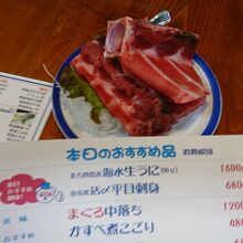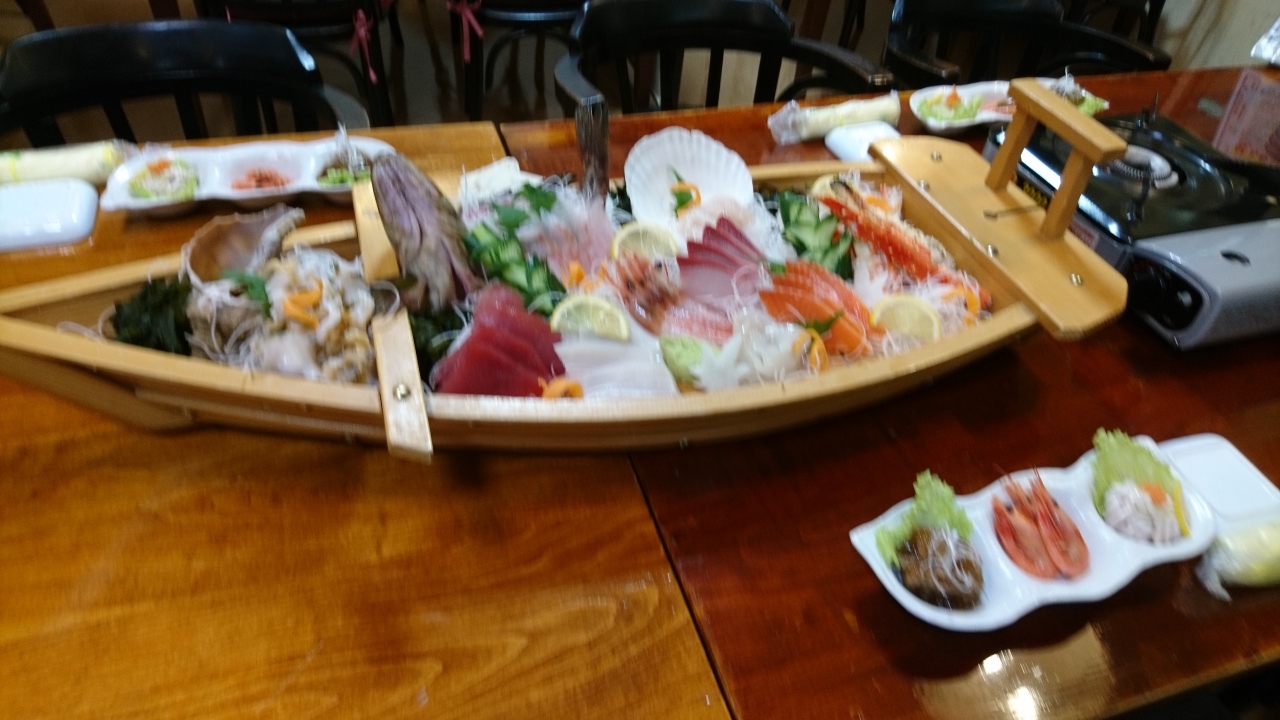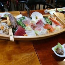 お刺身など豪快なことで人気の居酒屋さんです。今回は、友人との飲み会を、こちらで行いました。予算を伝えておいただけで、お任せのコースでしたが、刺身の船盛が出てきました。ビックリです。そして、そのおいしさにさらにビックリです。マグロの背骨の中落も付いてきて、おいしいひと時が過ごせました。