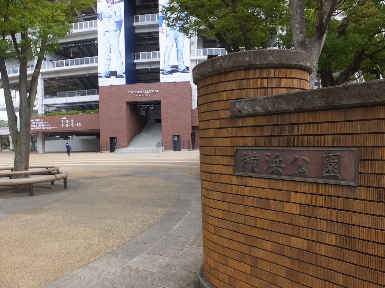 横浜スタジアムのある公園です。関内駅側からくると巨大な球場の建物しか見えず、コンクリの世界ですが、裏側が街中とは思えないような緑の公園になっています。朝、地元の方なのか散歩している人が多かったです。