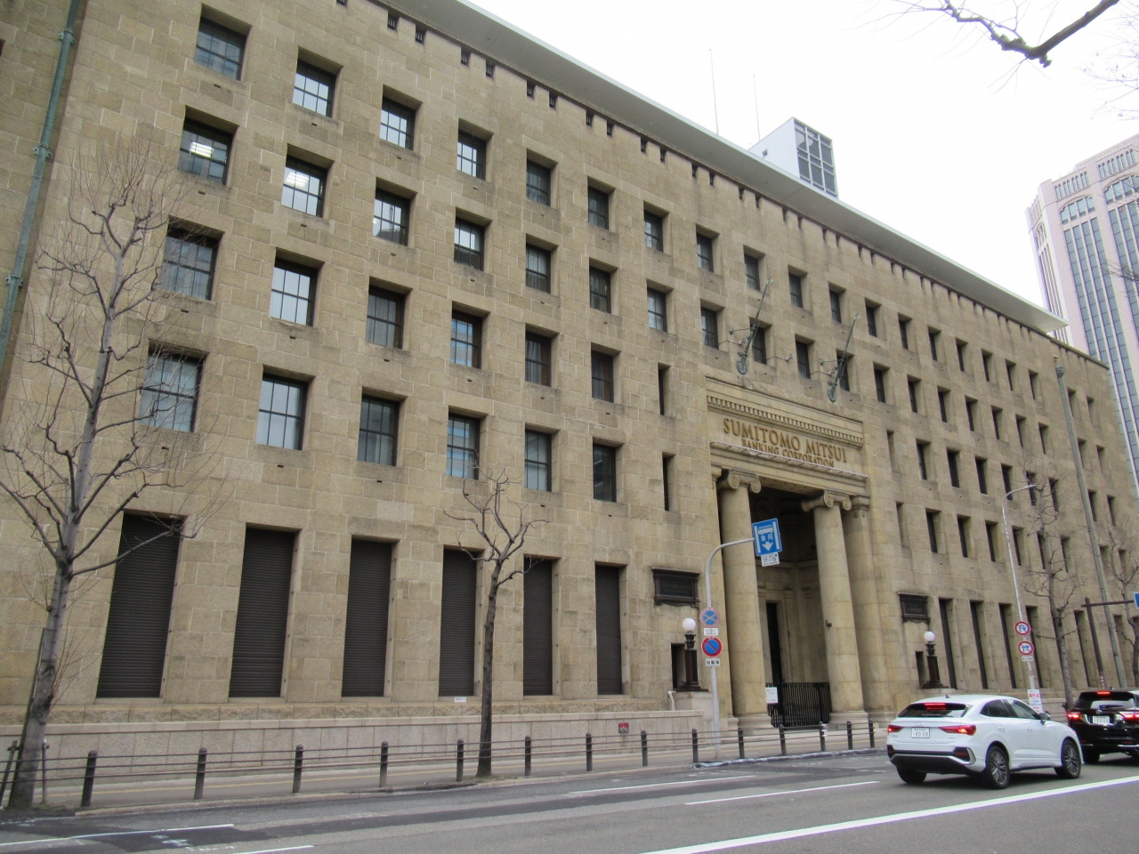 大阪市内を流れる土佐堀川の淀屋橋と肥後橋の間に整然とした窓が広がる古い重厚な西洋建築のビルがあり、現在は三井住友銀行大阪本店となっています。