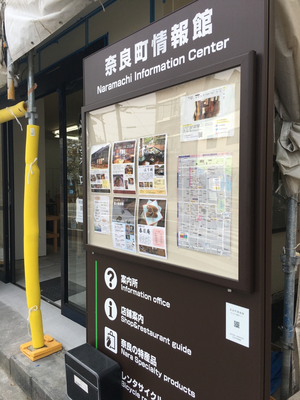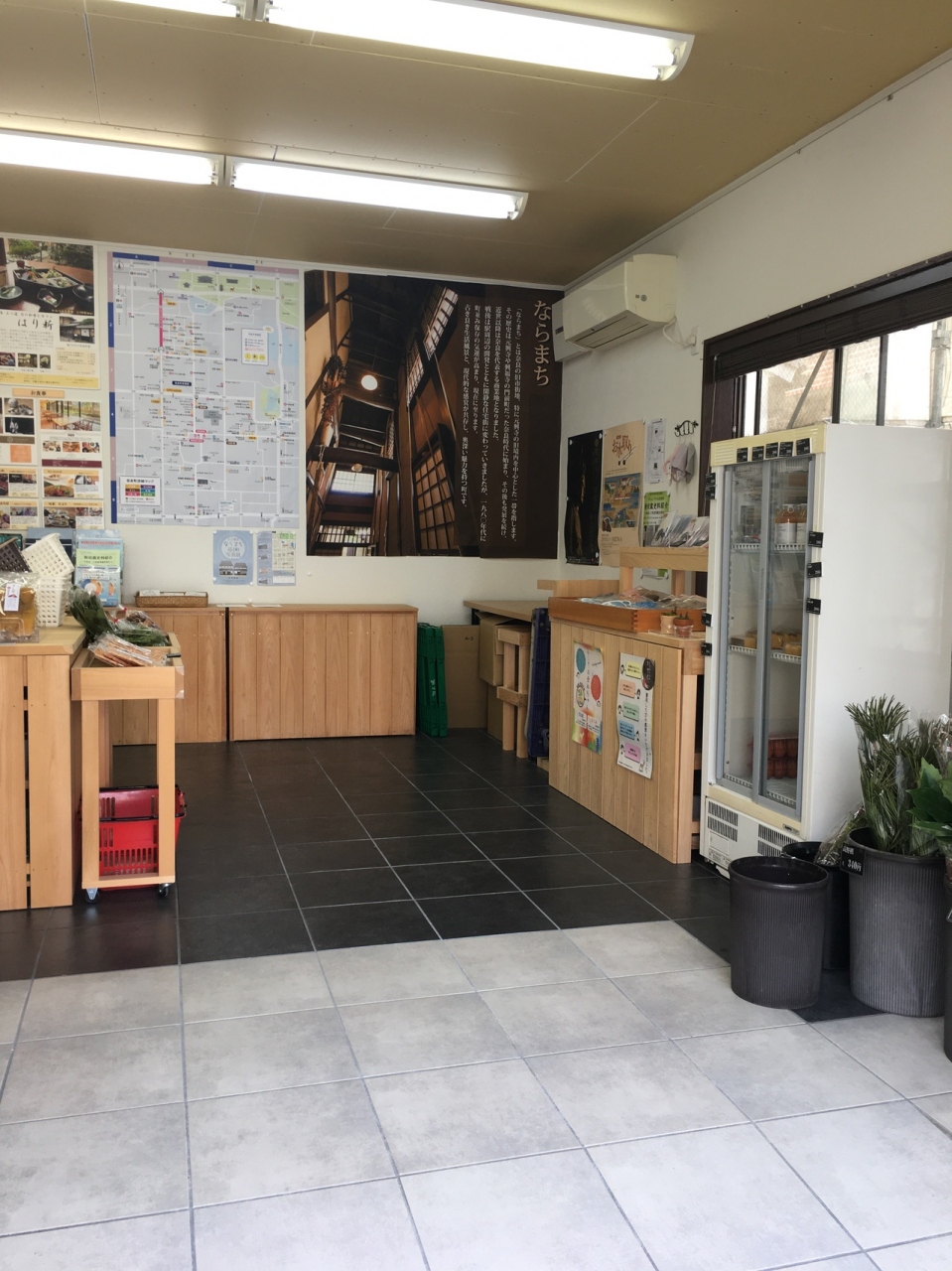 訪問時は外観は改装中でした。ならまちエリアの主要道路沿いにあり、ならまちを周遊するには情報を得られる場所でした。館内に入ると大きな周辺の大きな地図が掲載され、パンフレット類もあり、案内人も駐在していました。地元の野菜も売っていました。