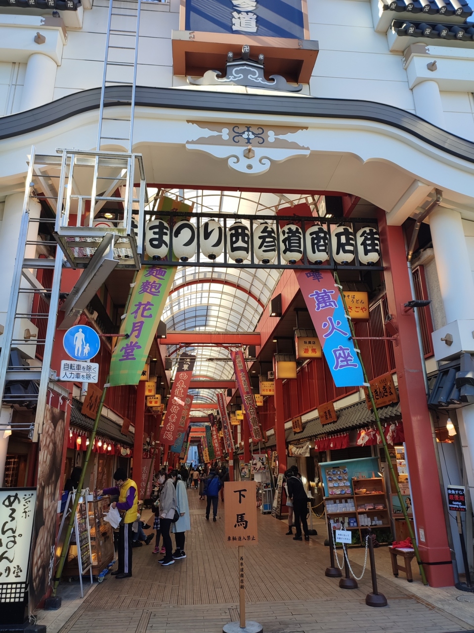 名前の通りなんですが、浅草寺の本堂から西に行ったところにある商店街です。アーケード付き商店街になているせいか、参道感はあまりないです。午前中ということもあり、まだ空いてないお店などもありましたが、それでも人通りはさすがに多めで、時間によってはかなり活気がありそうです。