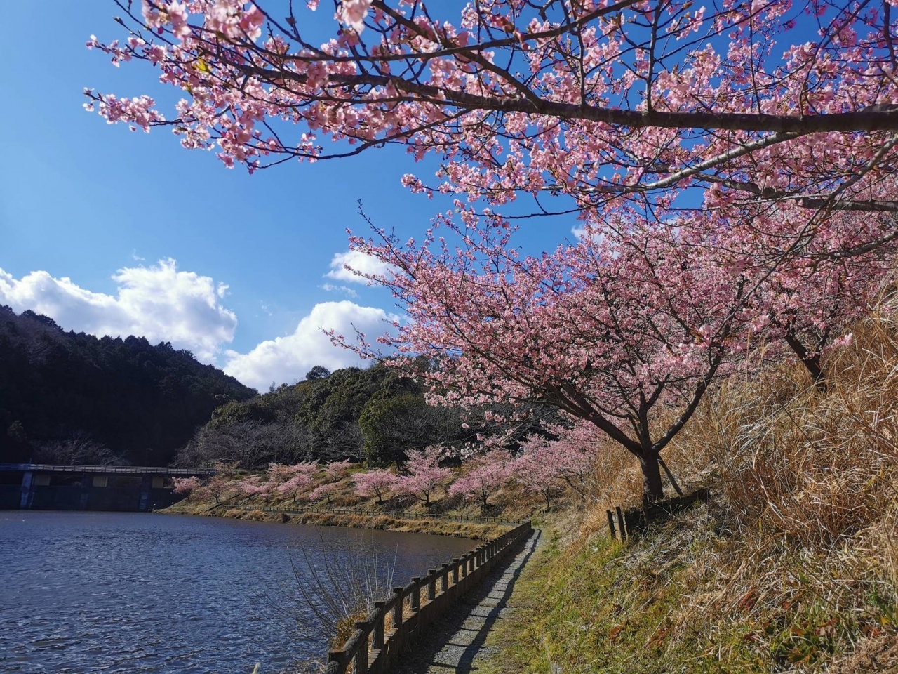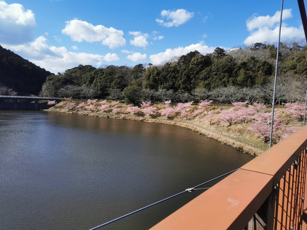 中央には調整池があり、この池の周りには河津桜が植えられており、訪れた3月初旬は満開の河津桜を楽しむことが出来ました。