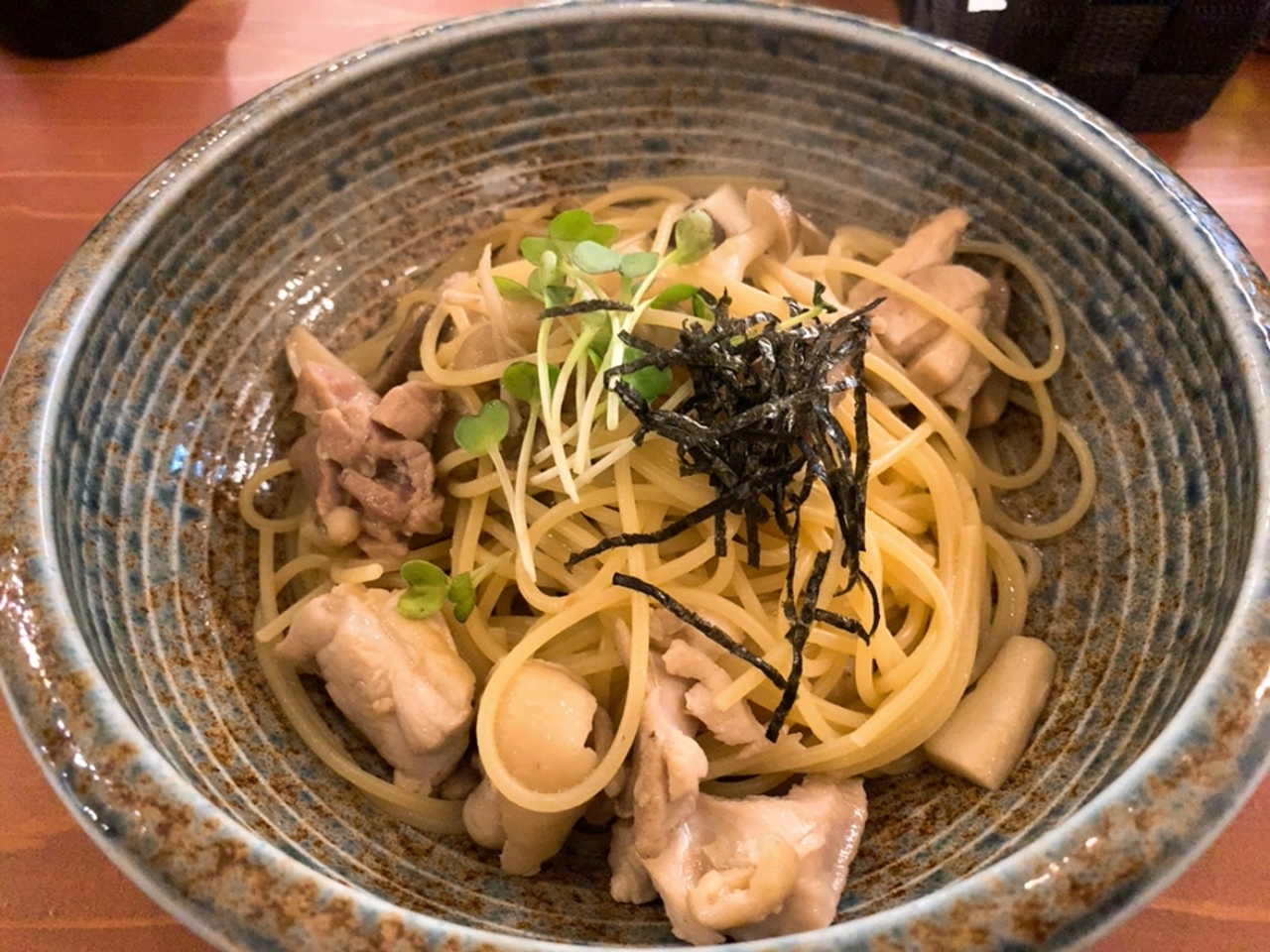 近江鶏ときのこの和風パスタをチョイス。 なかなか珍しい組み合わせだな?と思いましたが、予想以上に美味しくて感動しました。 シンプルな味付けもgoodです! パスタのアルデンテ感もちょうど良かったです。