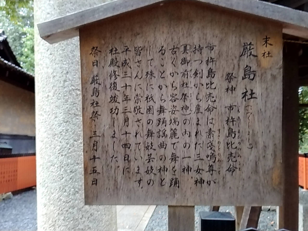 八坂神社の末社で、ご祭神は「市杵島比売命いちきしまひめのみこと」。ご利益は「美容祈願」や「芸能」だそうです。