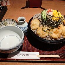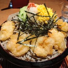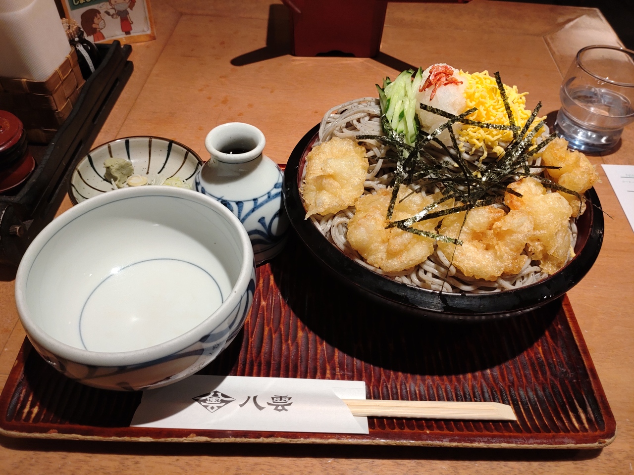 今回は「蝦おろしそば」をオーダー。地元STV「どさんこワイド」の人気ランキングで1位になったことのあるメニューで、お蕎麦の上に海老の天ぷらが5つも乗った贅沢な逸品。海老にはわざと腹に切れ目を入れず敢えて真っ直ぐな海老天になっていないところも特徴。もちろん海老はプリプリで美味。大根おろしがたっぷり乗っているのでさっぱり食べられます。プラス140円で大盛りにしたところかなりのインパストなのですが、しかし少し食べにくい。蕎麦は蕎麦粉6割でつなぎときざみごまを入れて、季節や気温、湿度によってコネの水の量を変えているとのこと。汁は日高昆布と自社で削る4種類の鰹節を使ったもので、そばとの相性は良いです。