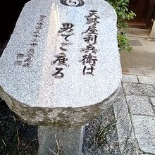 門の外に「天野屋利兵衛は男でござる」という石碑がありました。