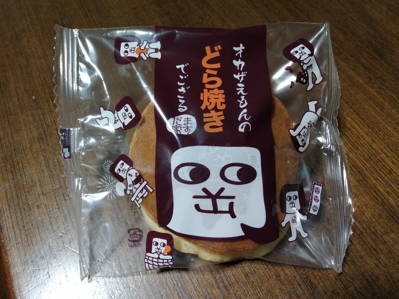 岡崎市を中心に4店舗を展開する和菓子屋さんです。土井店におじゃましました。ますだ家と言えば「かりんとう饅頭」が有名ですが今回は「オカザえもんのどら焼きでござる」を購入。税込172円。オカザえもんとは岡崎市の非公式ご当地キャラです。いわゆる観光用の土産菓子です。パッケージは抜群に映えます。どら焼きの生地にはオカザえもんの顔の焼印が押されていますが、いたってフツーの粒あんのどら焼きです。お土産以外にはあまり買う意味はないかなと思います。