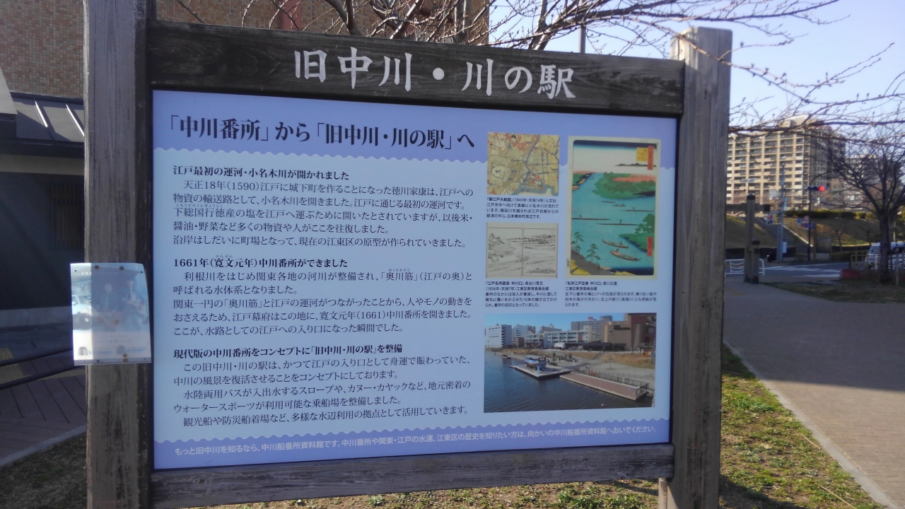 都営新宿線東大島駅から歩いていける場所にあります。ここにはかつての番所があった場所から駅へと変貌を遂げました。かつて水運でにぎわっていた歴史を生かして現在では観光船などの水辺利用の拠点として活用されています。