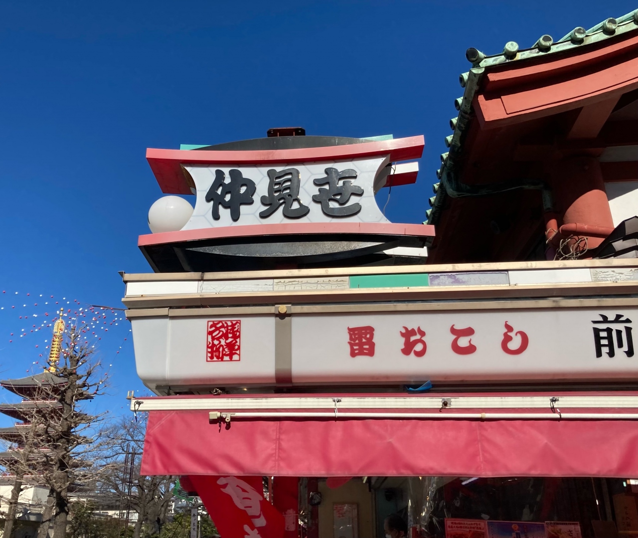 浅草の観光地、浅草寺の本堂から雷門までに