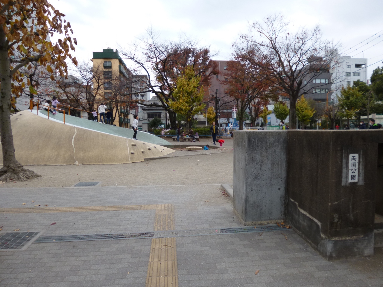 「両国公園」は、JR両国駅から南東方向に300メートルほどの場所にある小さな公園です。遊具があり小さなお子さん連れの家族の姿が見られましたが、それほど特徴的なものは感じませんでした。一方で「勝海舟生誕の地記念碑」があるなど、歴史好きな方には興味深い公園だと感じました。