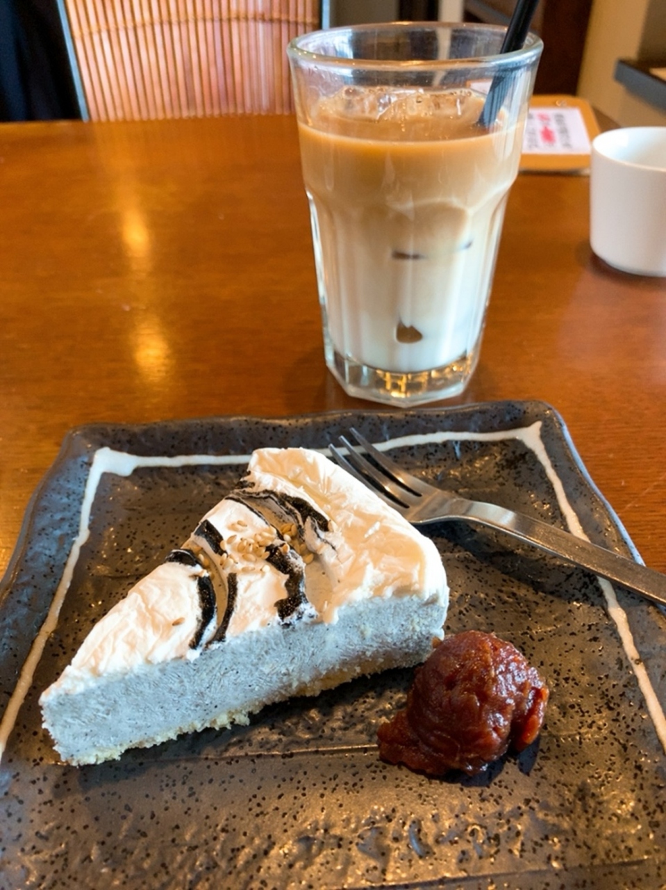 雫家ランチセットにしたので、ケーキセット付でした。 ごまごまのレアチーズケーキもめっちゃ美味しかったです!