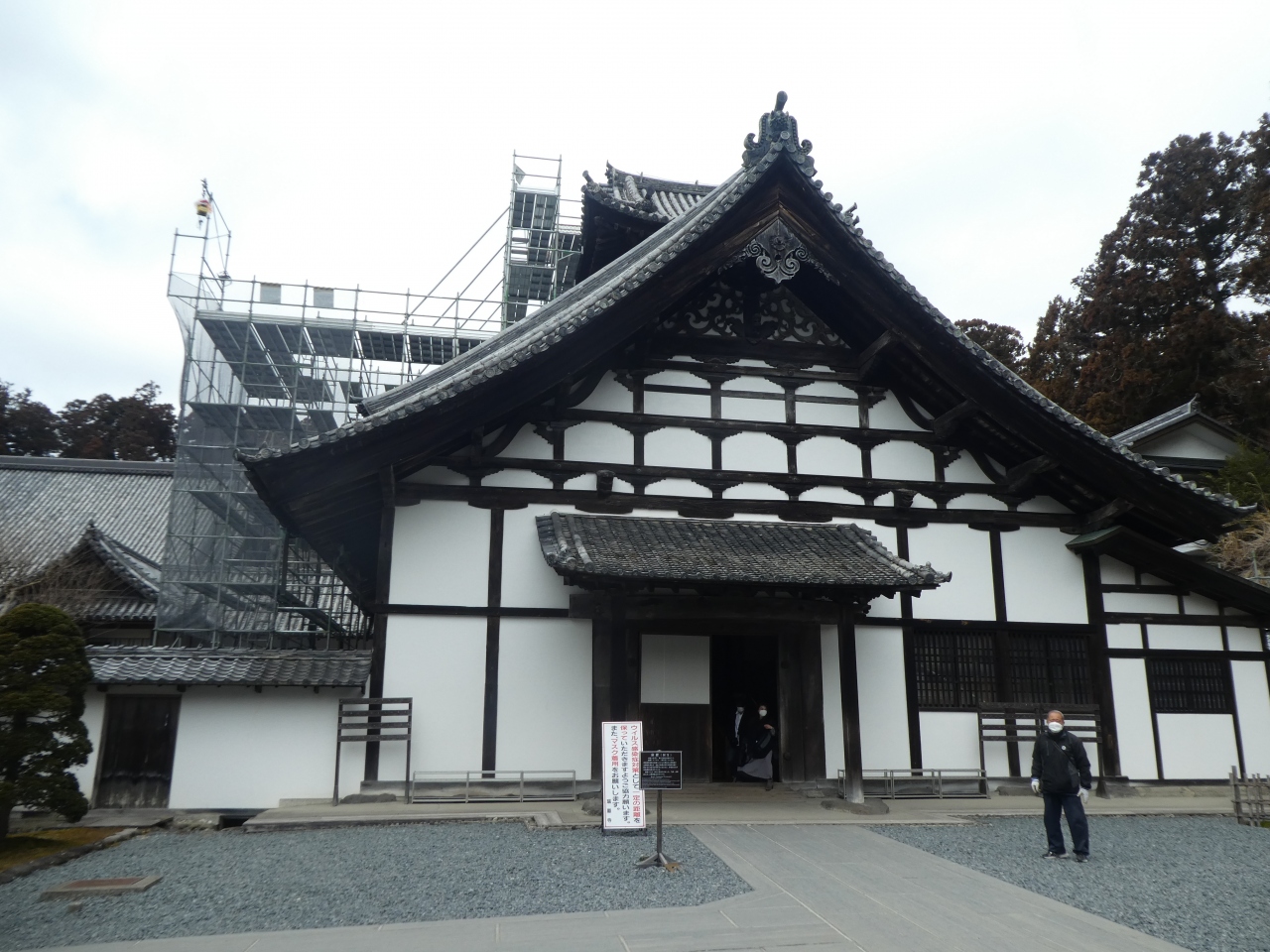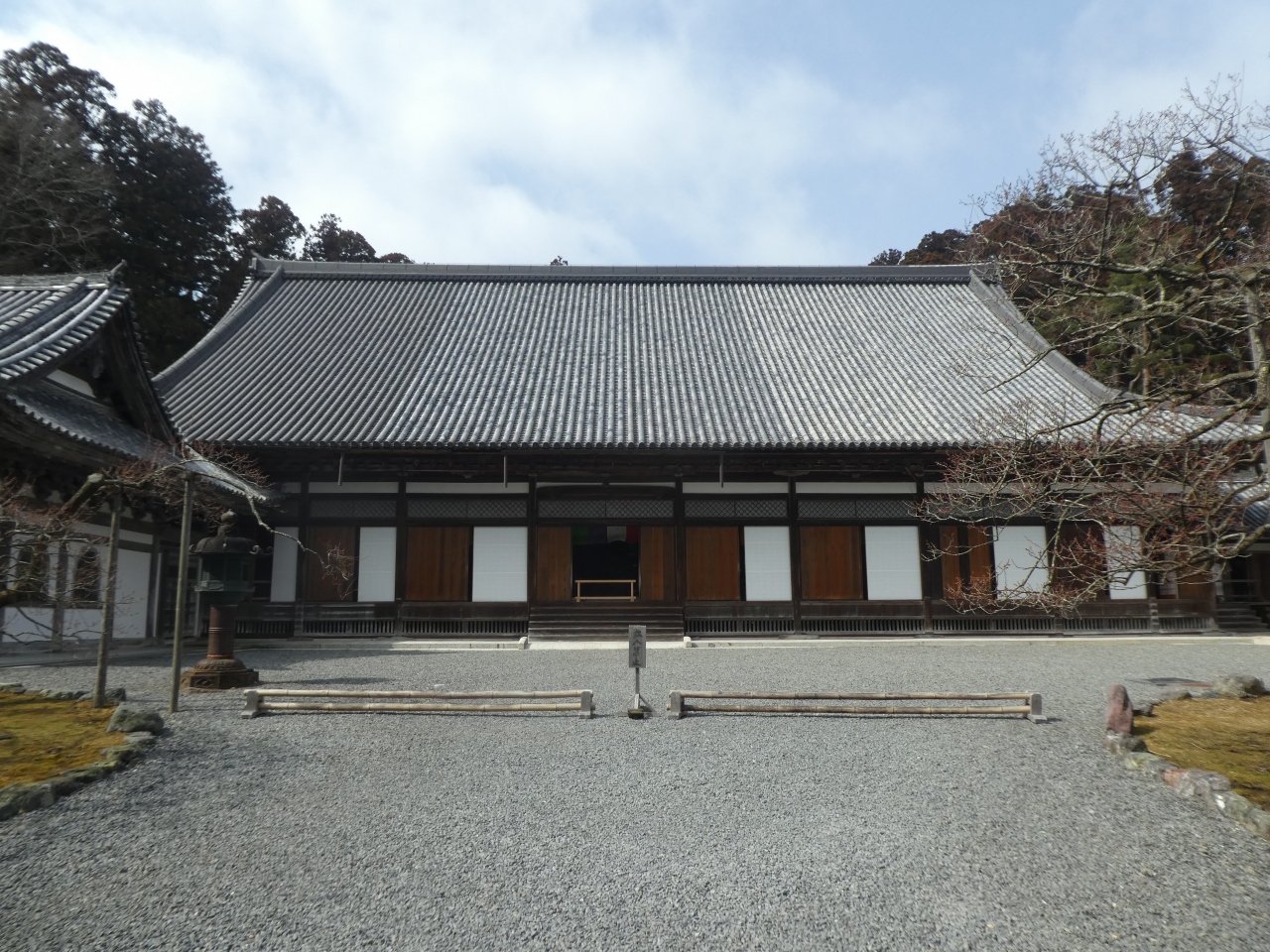 海岸側の正面参道から入らせてもらいました。総門をくぐると杉並木が続いています。東北大震災の時の津波はこの辺りまで押し寄せたようで、塩害で大分伐採されたようです。庫裡から上がって本堂へ。堂内はいくつかの座敷に分かれ、そこに詰める人の身分格式によって障壁画や天井の構造が違っていることに驚かされました。中でも中心の孔雀の間の「二重折上小組格天井」は初めて見る豪華なもので感動しました。