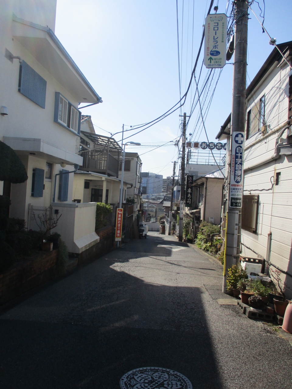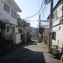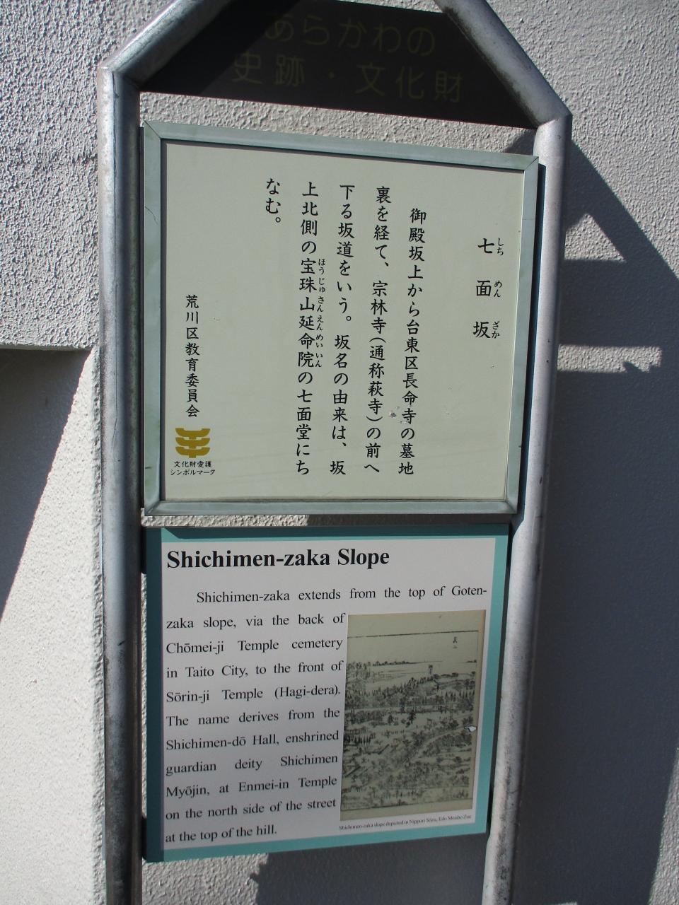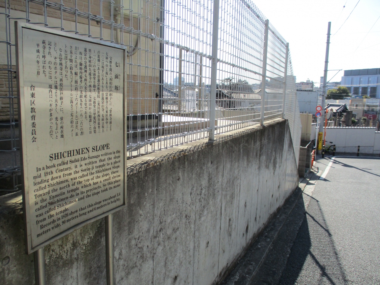 谷中のゆうやげだんだんん階段の裏側に、細い坂がありました。坂の途中に案内板も立てられていました。結構急な坂道で上る時には少し息が切れてしまいました。カーブもあって車も通るので通行には十分注意が必要な坂道だと思いました。