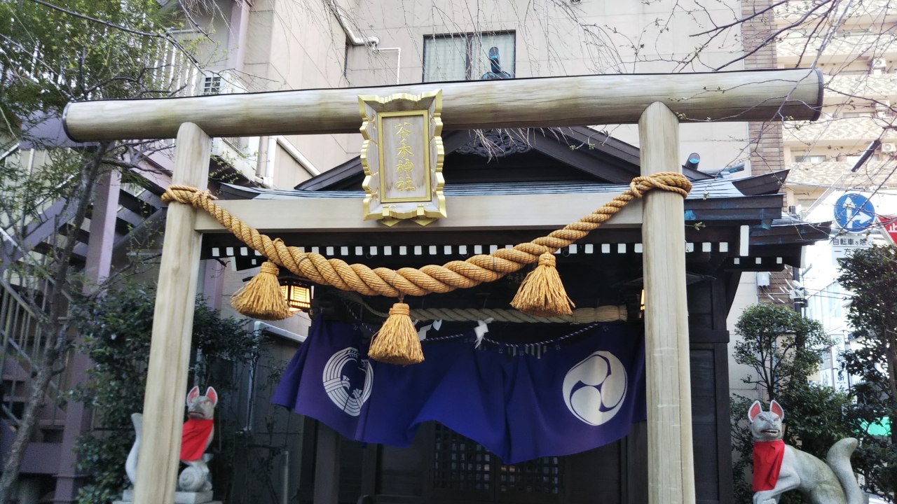江戸時代に創建され、元々は当地にあった下総国佐倉藩の中屋敷の屋敷神として祀られていたのが起源とのこと。