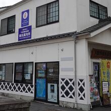 下田駅構内、パンフレットや地図が少し置いてあるカウンターがあります。ここは駅前案内所ではありません。駅から出て、南へ歩いて行くと、交差点の向こうになまこ壁の建物が見えてきます。お休みはないですが、17時には閉まってしまいますので、下田に着いたら、ここで、散策のためのマップを手に入れていくとよいと思います。案内所近くの、マイマイ通りは観光する場所もありますし、ペリーロードにも通じているので、便利です。
