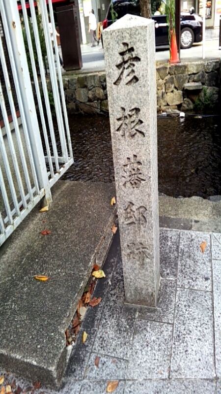 高瀬川沿いに「彦根藩邸跡」と書かれた小さな石碑がありました。