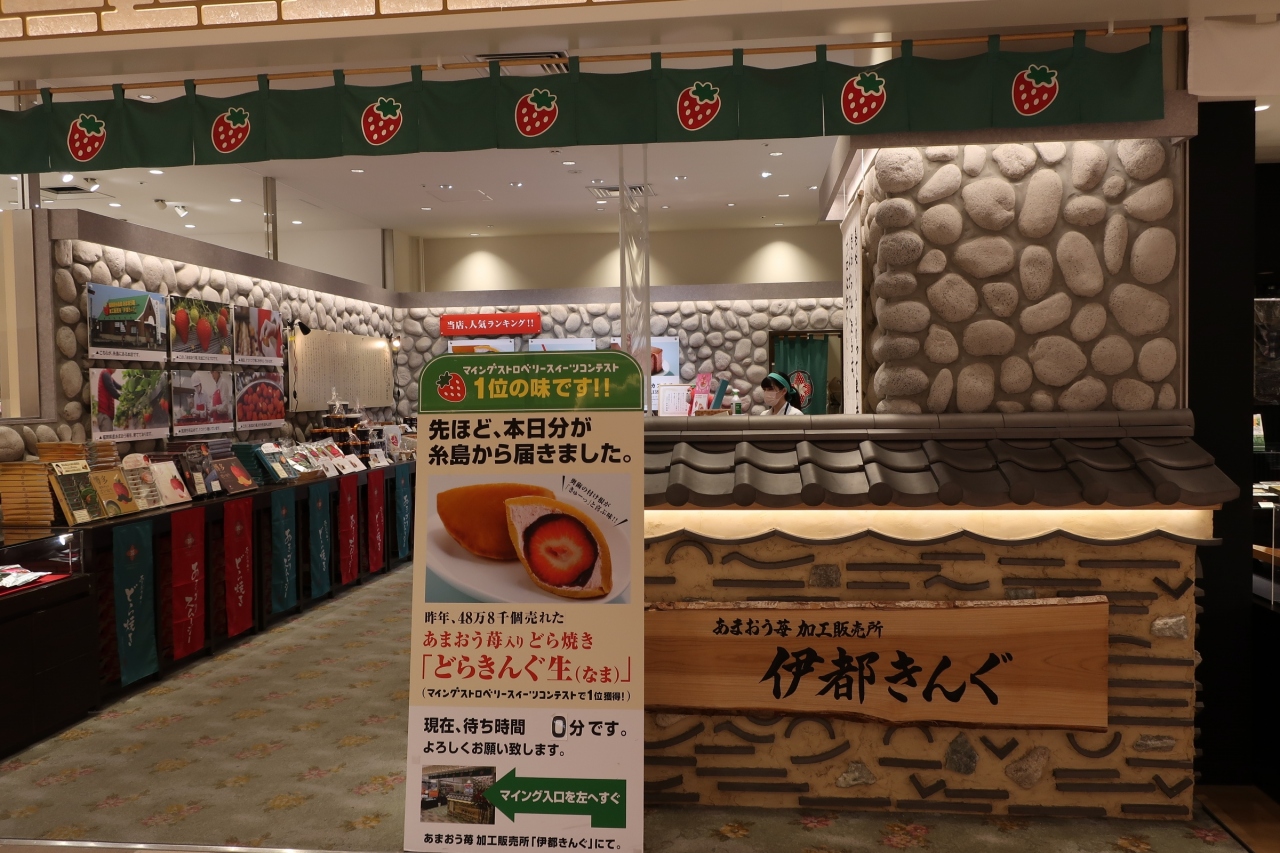 店員さんは一人しかいないです。親切に教えてくれます。商品は夜行ってもたくさんあります。期間限定のどらきんぐ生を買ってホテルに持ち帰っていただきました。あまおうが入っていて11月下旬から5月末までの限定商品です。早く食べないとちょっと水っぽくなってしまいます。その日に食べれば問題ないと思います。