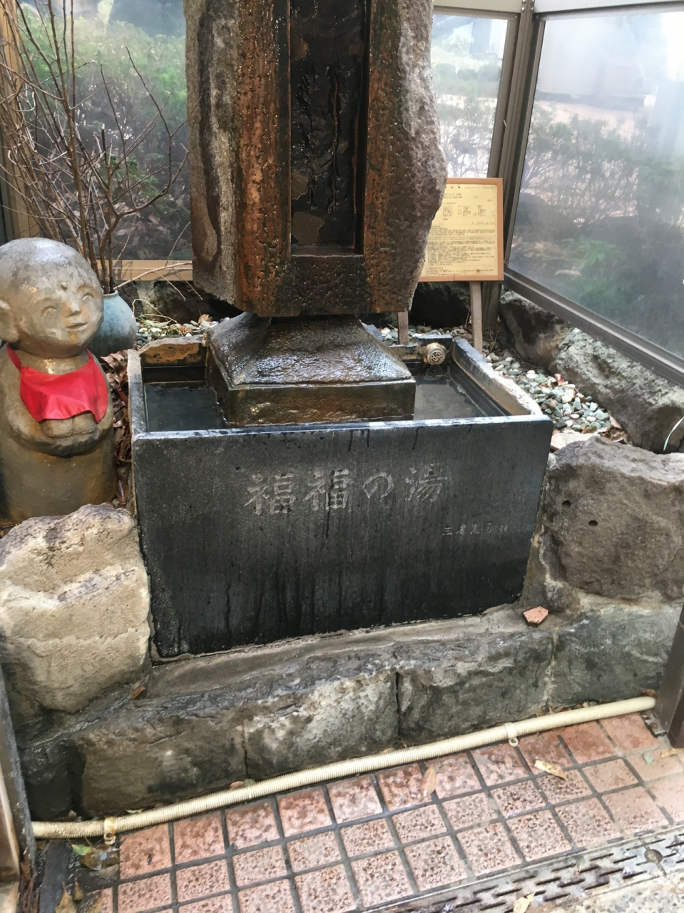 地中300メートルから湧出している温泉で、時間帯により温度が異なるようですが、訪問した時の湯は熱く、ぱっと触っただけにしました。石碑の上から下に流れる感じで日中のみ湯が出ています。人通りが多い商店街にあり立ち止まり手湯を楽しむ観光客が多くいました。