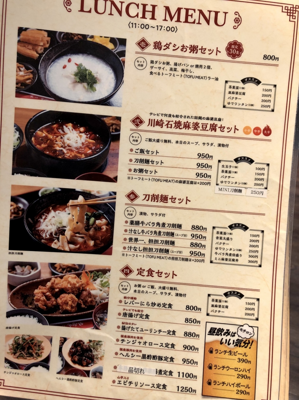 このメニューの名称は長いけど、「川味牛肉刀削麺」だな