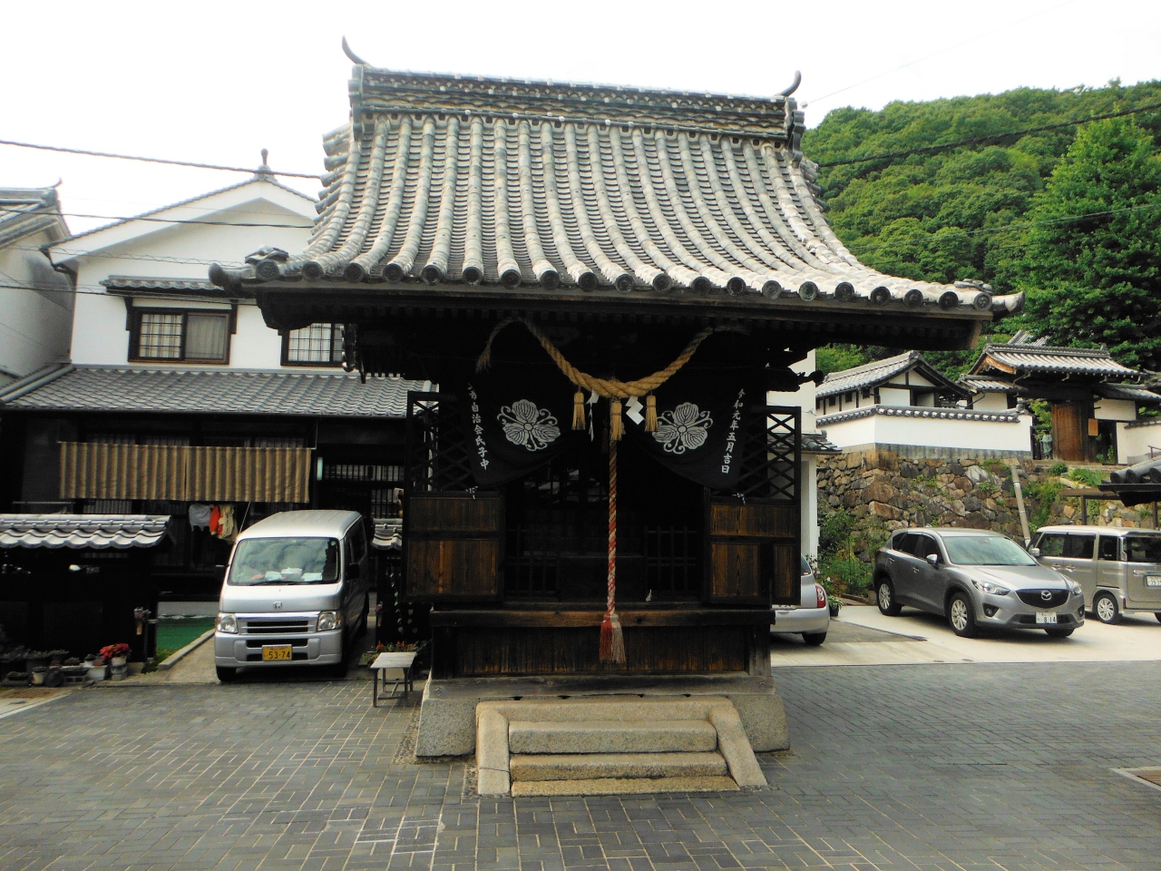 たけはら町並み保存地区の本町通りの突き当りにあります。
