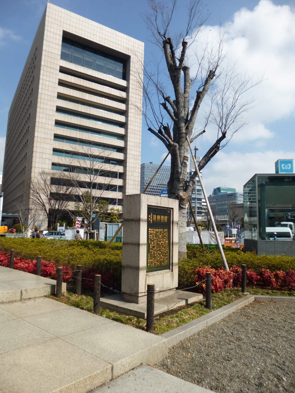 大手町駅と竹橋駅の間、お濠に沿ったところに、大手濠緑地があります。高さ4mの和気清麻呂像が立っているので、遠くからでもわかりやすい場所です。当日は、お天気の良いこともあり、保育園児がお散歩の途中なのか、しゃがんで土いじりをしていました。緑地内には、震災銀杏があります。関東大震災による火災を逃れた銀杏で、現在は、気象庁の東京の銀杏の標準木となっているそうです。