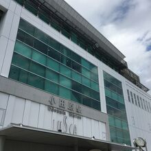 小田原駅東口で改札口出て直ぐで駅ビルです。改札口から行くと左右2箇所の出入口があり、ドトールコーヒーの店舗が目立ちました。屋上と4階を除いて食べ物屋がありました。どのフロアの店舗もゆったりとした店構えでした。