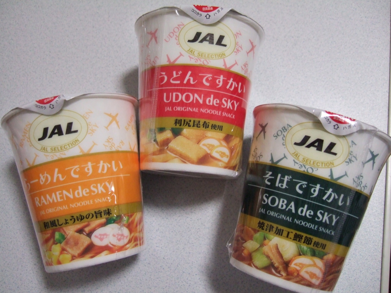 普通の売店とは少々違う商品も多く、国内線ファーストクラスの機内で提供されるカップ麺、でスカイシリーズが箱で買えます。