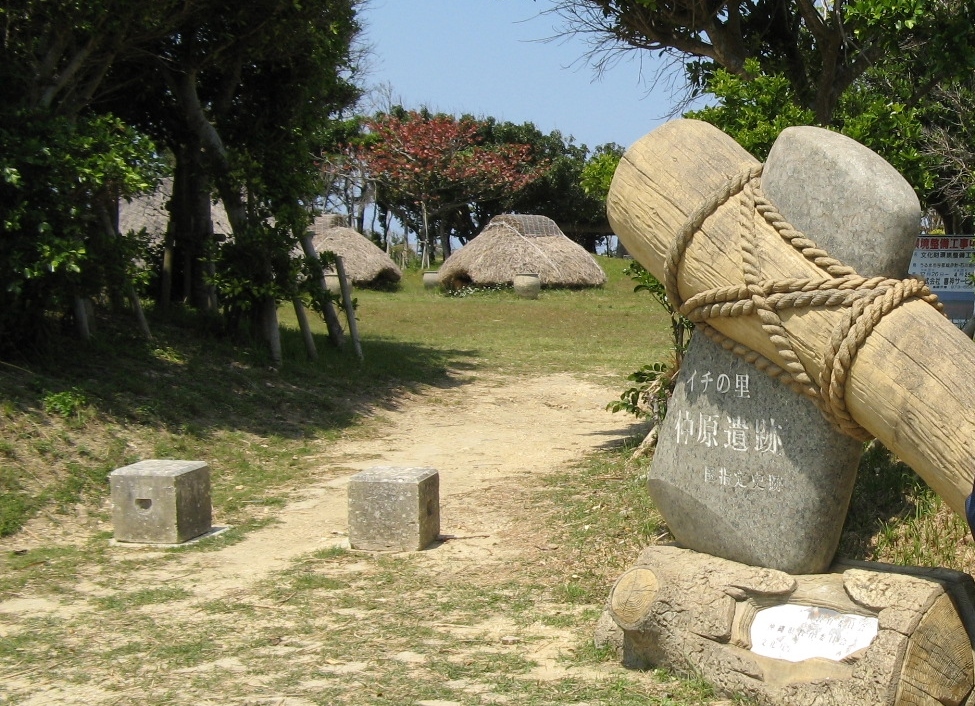 伊計島のほぼ中央部、サトウキビ畑の真ん中にある縄文遺跡です。現地は原っぱのようなところで、竪穴式住居が数軒復元整備されています。昭和61年に国の史跡に指定されています。伊計島では海を除いて他にこれと言った観光スポットが無いし、無料で観られるので良いと思います。
