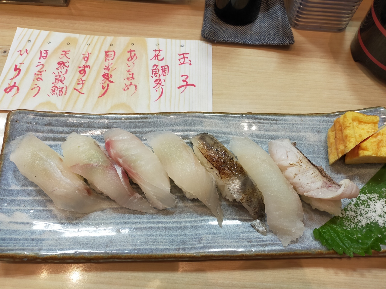 ランチの時間に行きました。活気のあるスタッフさんたちが案内してくれます。回転のレーンは止まっていて、注文したら店員が握ってくれるようです。駅前の商業施設の中に入っていて観光客一人でも入りやすい雰囲気です。