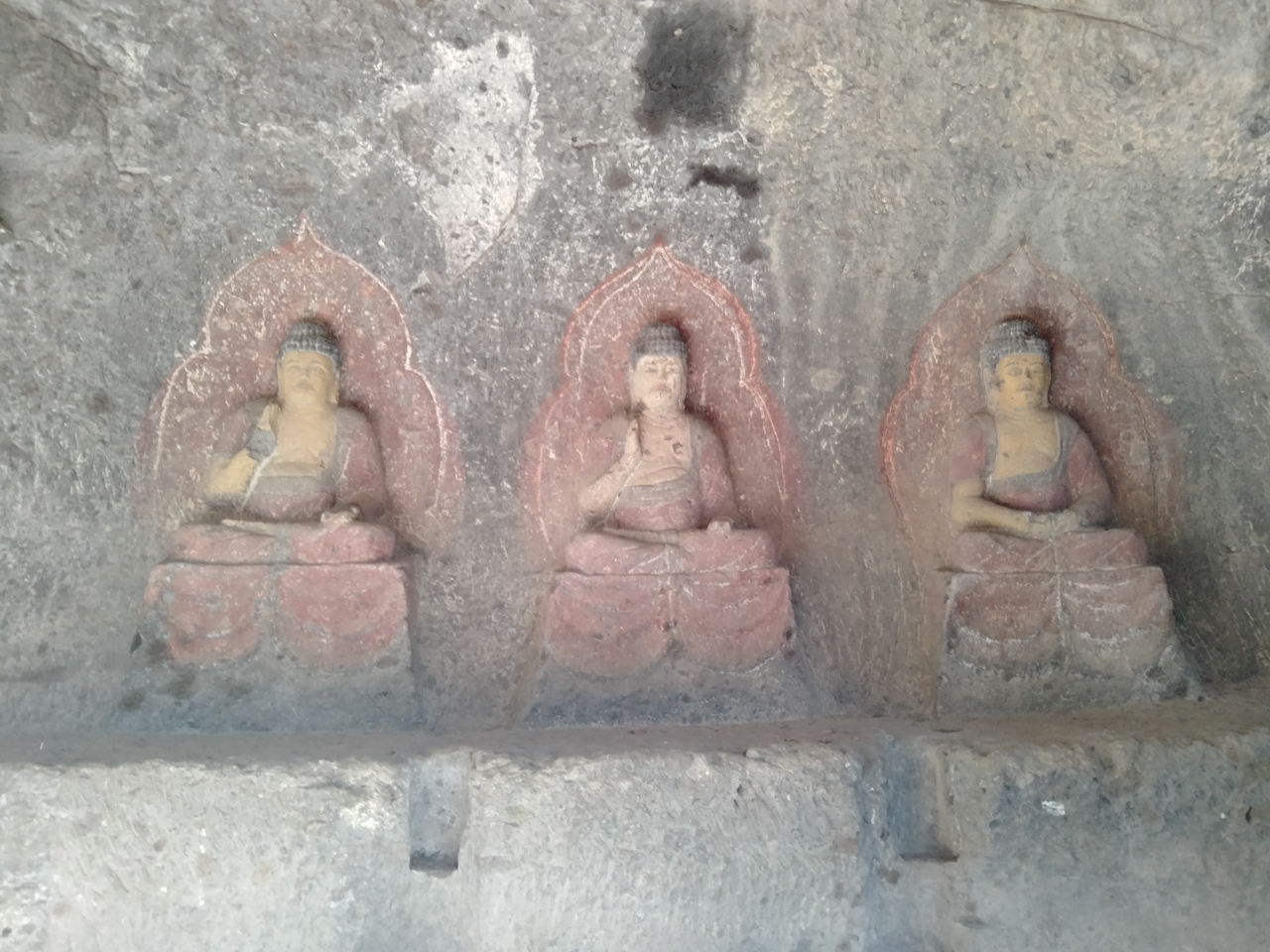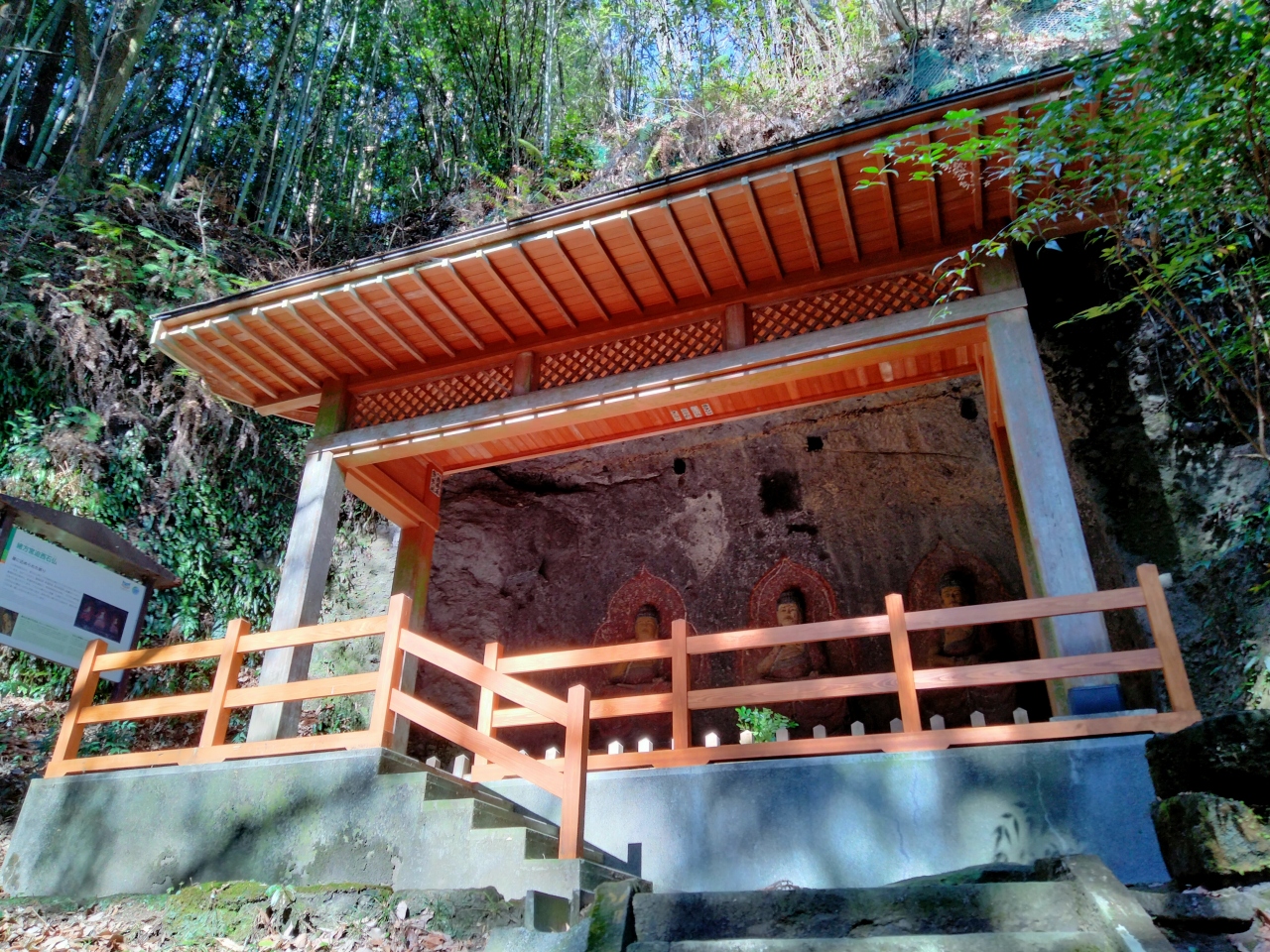 宮迫西磨崖仏は釈迦如来を中心に阿弥陀如来と薬師如来が平等並列になっています