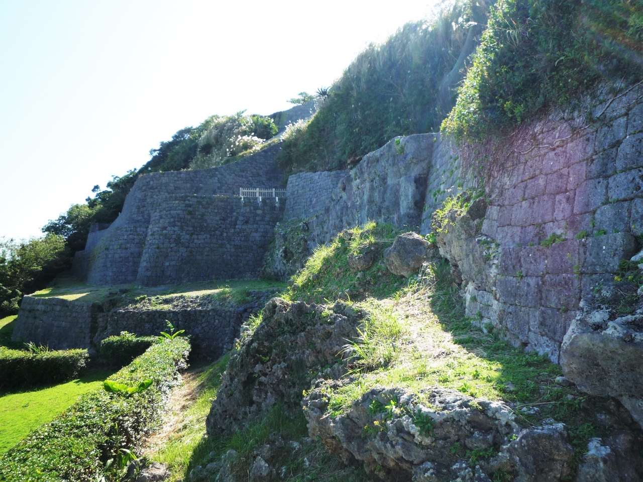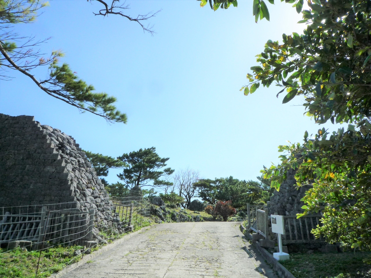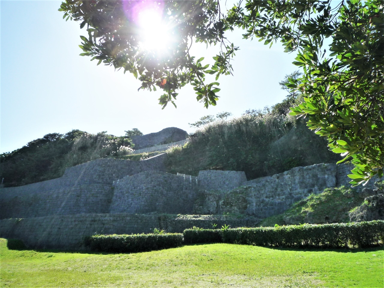 標高130mの琉球石灰岩の丘陵地帯に位置し、東シナ海から読谷まで見渡せる景観を持ちますが、それゆえに過去に様々な外敵からの侵略もあって不幸な生い立ちを持つ城です。