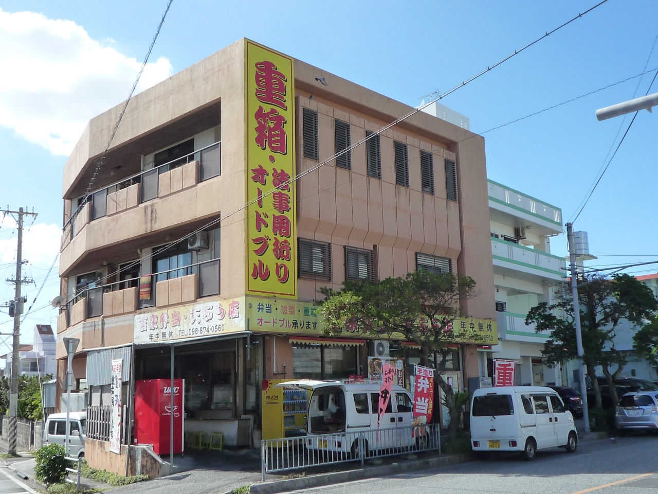 ゆいレール浦添前田駅から徒歩で5分~、警察通りを真直ぐに行けば歩道橋が在る左袂に重箱・法事用折・オードブルと黄色い看板が目立つ「吉家弁当天ぷら店」は地元密着型の弁当屋。