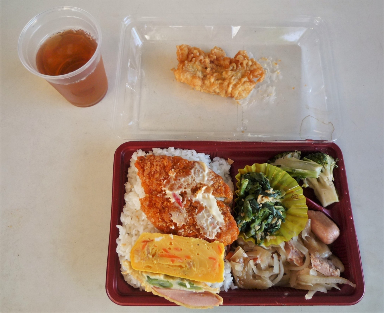 それでも品切れするほどでは無く、数多い弁当から魚フライ弁当¥350と、魚天ぷらをチョイスして¥420という安さです。