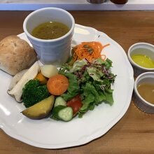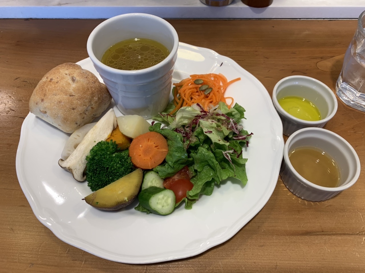 有名な高級果物店です。店内にはカフェも併設しており、ランチやスイーツをいただくことができます。子供とランチに入りました。僕が食べたものは、野菜たっぷりのベジランチ(800円)。野菜とパンのプレートに、スープ、スイーツ、ドリンクが付いています。なんだかんだ満腹になりました。ヴィーガンな食事も良いものです。