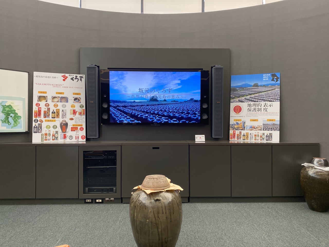 坂元のくろずの歴史や製法をビデオで紹介。その後「壺畑」が見えるテラスへ移動。桜島と壺畑の眺望に感動しました。何度かテレビや雑誌で見た事がありましたが見事でした。