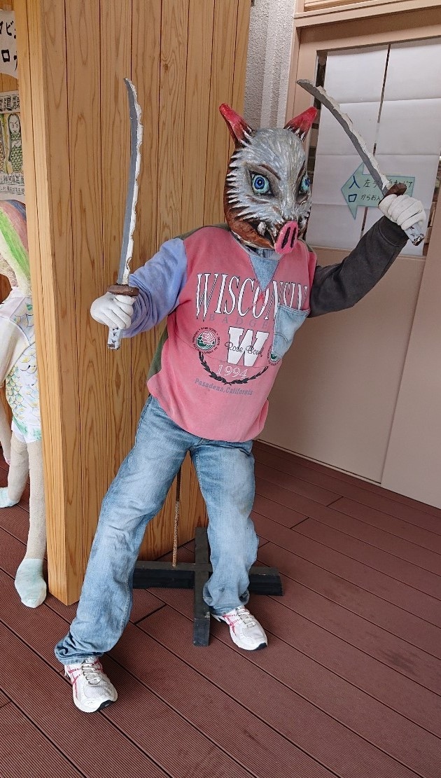 天草の観光で立ち寄りました。買い物もできますが、学校の跡地利用に案山子、ナンセンスな感じがとても面白い。このまちでは、毎年、案山子のお祭りがあるそうで、それにちなんでいるそうです。農産物などの種類が豊富にある