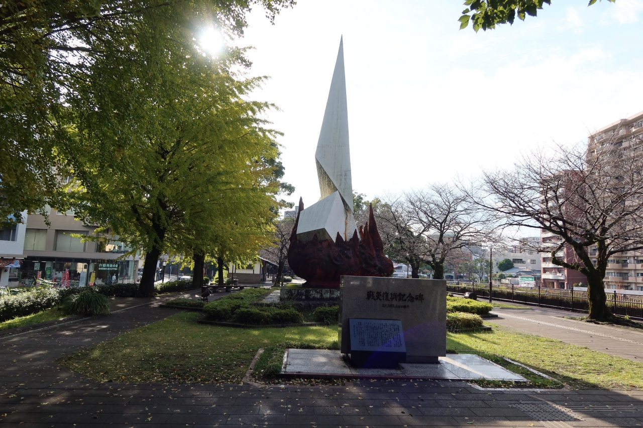 第二次世界大戦時米英連合軍により爆撃され93%もの土地を焼失した鹿児島市の復興を祈念して建てられた物です。