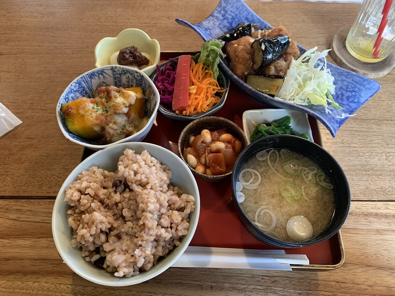 宗吾参道の近くにある古民家を利用したカフェです。10時から開いていますが、ランチが食べられるのは11時からなので、注意が必要です。限定8食の古民家きまぐれ御膳をいただきました。チキンと茄子の炒め物をメインにカボチャ、チリビーンズ、サラダなどがメニューです。ご飯は釜で炊いているとのことですが、ダマになっていて、正直イマイチ。