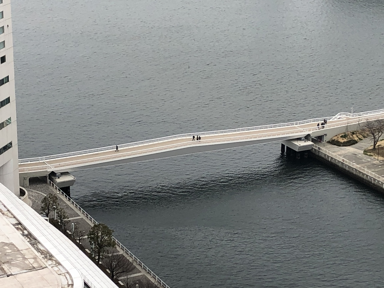 みなとみらいの海際を、グランドインターコンチネンタル横浜からハンマーヘッド方面へつなぐ橋で、とても便利になりました。