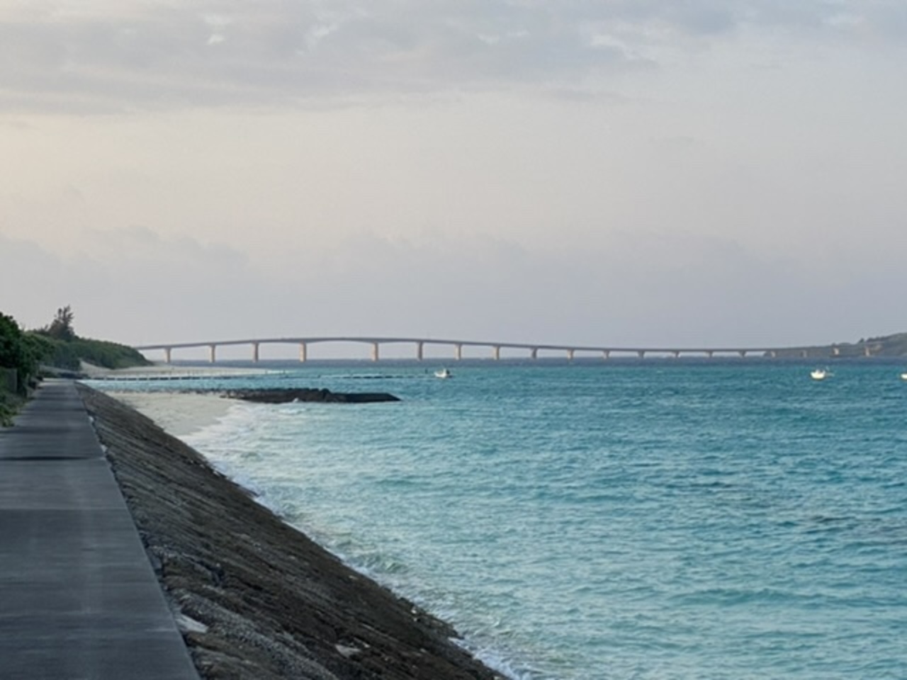 延泊した1泊がマリンロッジマレア宮古だったので近くの与那覇前浜ビーチに行きました。そこからは来間島、来間大橋が眺められました。