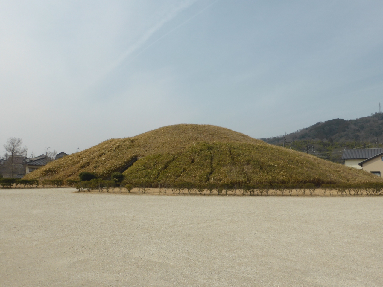 世界遺産・法隆寺から徒歩10分、その西方に、西里と呼ばれる昔ながらの集落を歩いていくと「藤ノ木古墳」があります。金銅製の馬具や装身具類、刀剣類など、現在は国宝に指定されている副葬品が多数出土したことで全国的に知られています。古墳の周りを一周し、ガラス窓越しに石室の内部を覗くことが出来ます。のどかな田園風景と古墳にロマンを感じました。