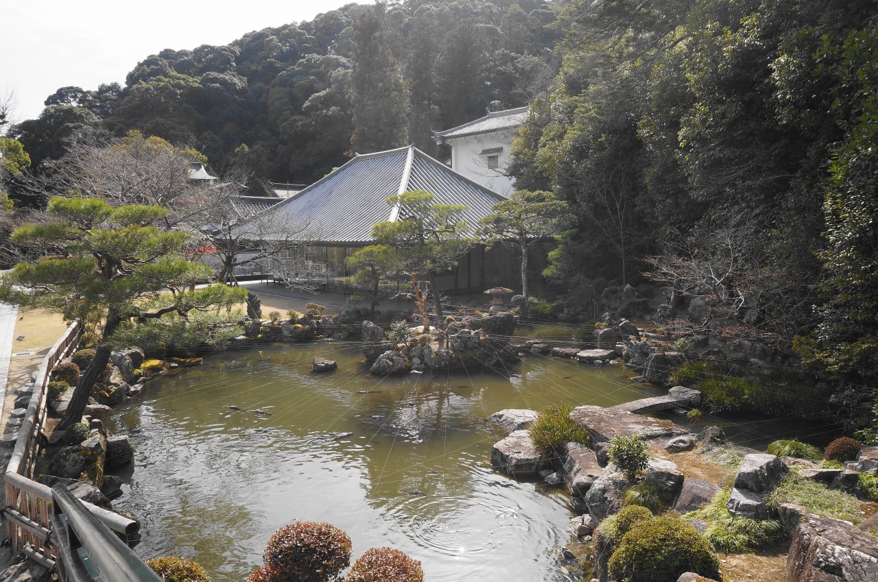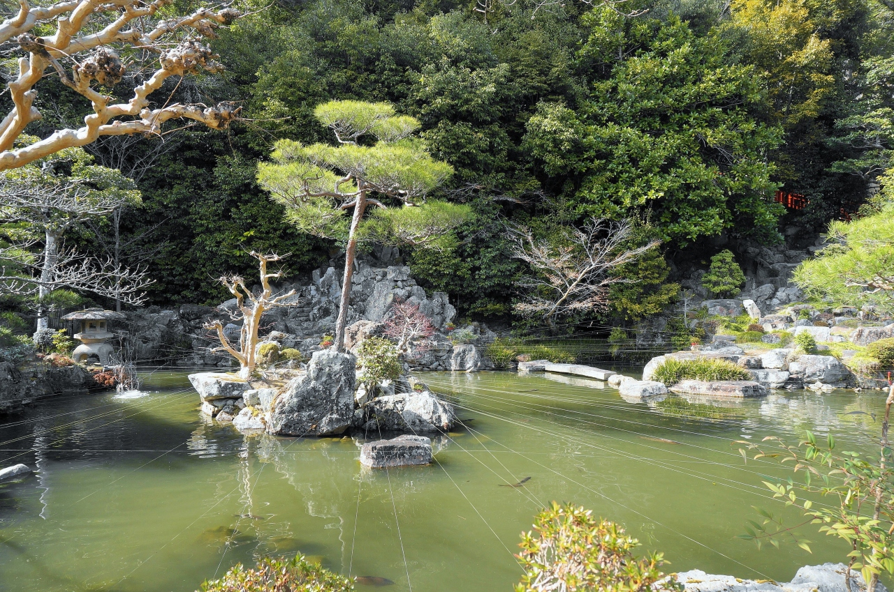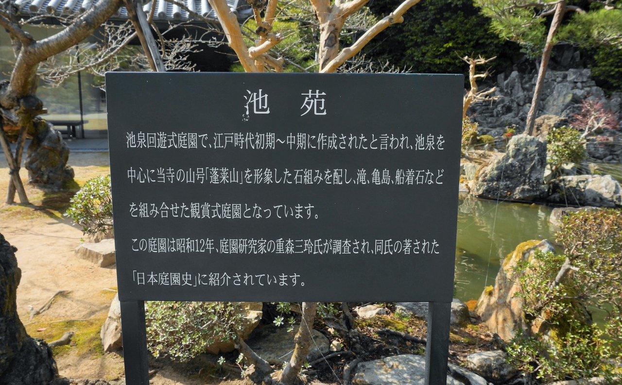 清澄寺の境内に、池泉を中心とした豪華な石組を配する池泉回遊式庭園があります。