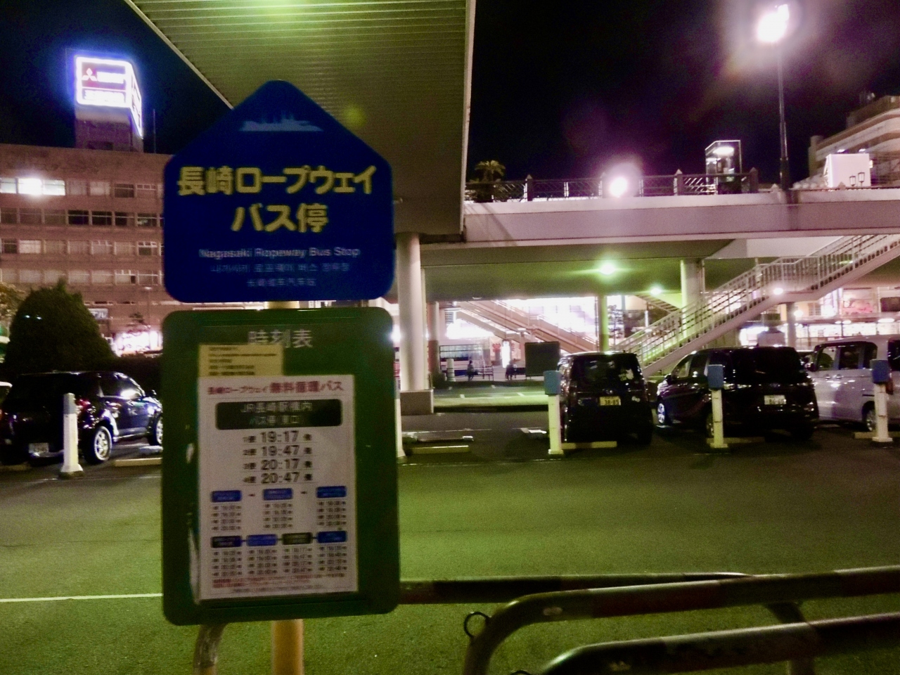 せっかく長崎までやってきたのだから、稲佐山からの夜景がどれだけのものか見てみようと思いつき、アクセスを調べると、無料の循環バスが往復利用できることを知りましたが、予約のタイミングが遅過ぎて、最終便しかとれず、山の上が超寒かった。