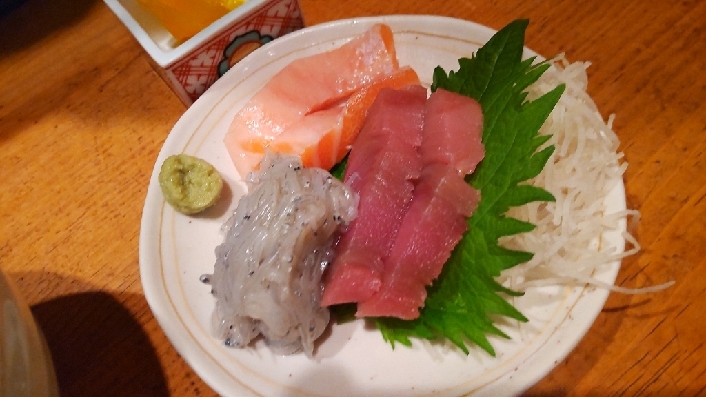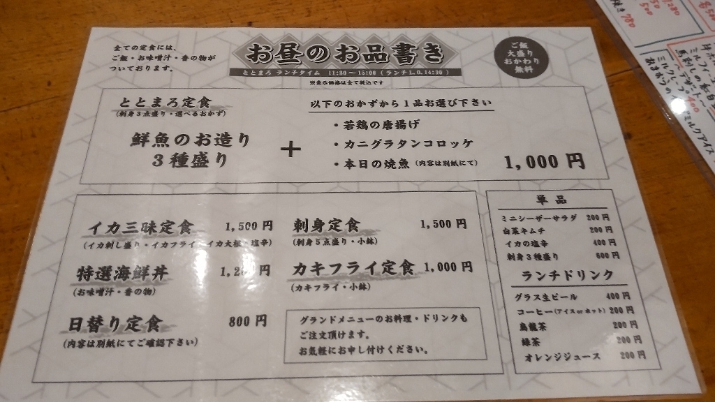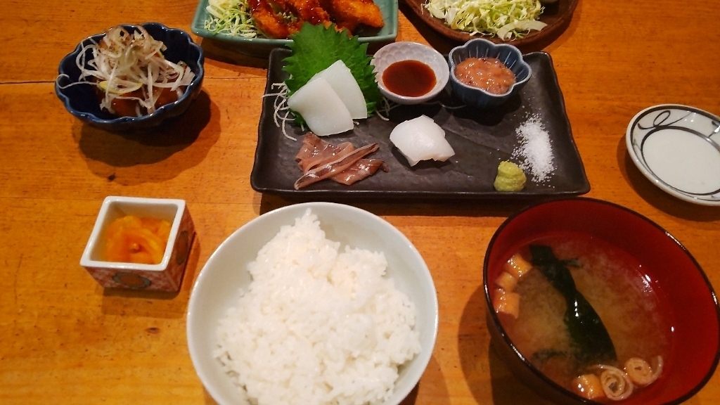 刺身に揚物か焼魚が付くととまろもいいが、やっぱり大好きなイカ三昧にしよう。